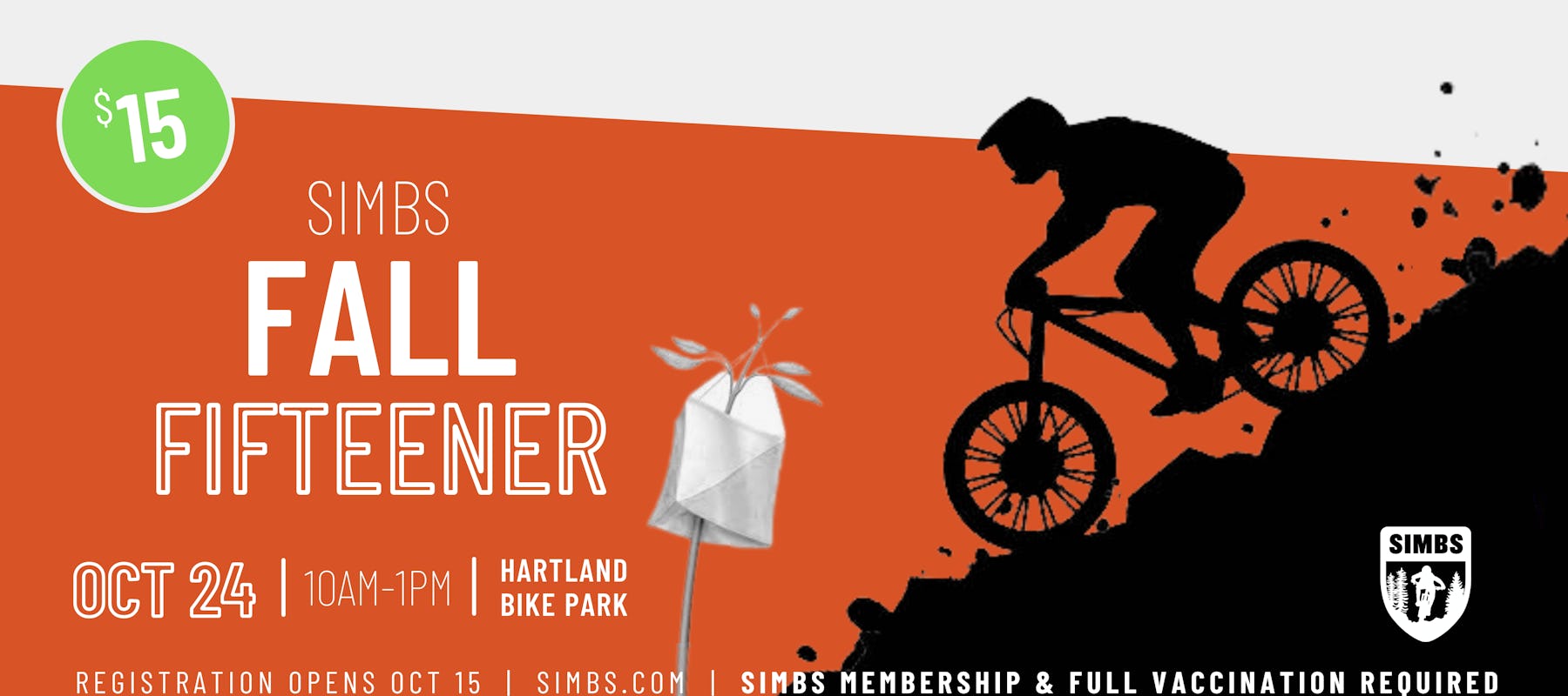 Join us Sunday, October 24 from 10am-1pm at Hartland Bike Park for the SIMBS Fall Fifteener, a chart-your-own-adventure mountain bike event that challenges participants to navigate through a series of checkpoints via their own plotted route. The catch? Location of the checkpoints, dotted throughout the Hartland trail network, won’t be revealed until the day-of, just before “3-2-1-go”! Don’t worry…we’ll give you a map 😉
