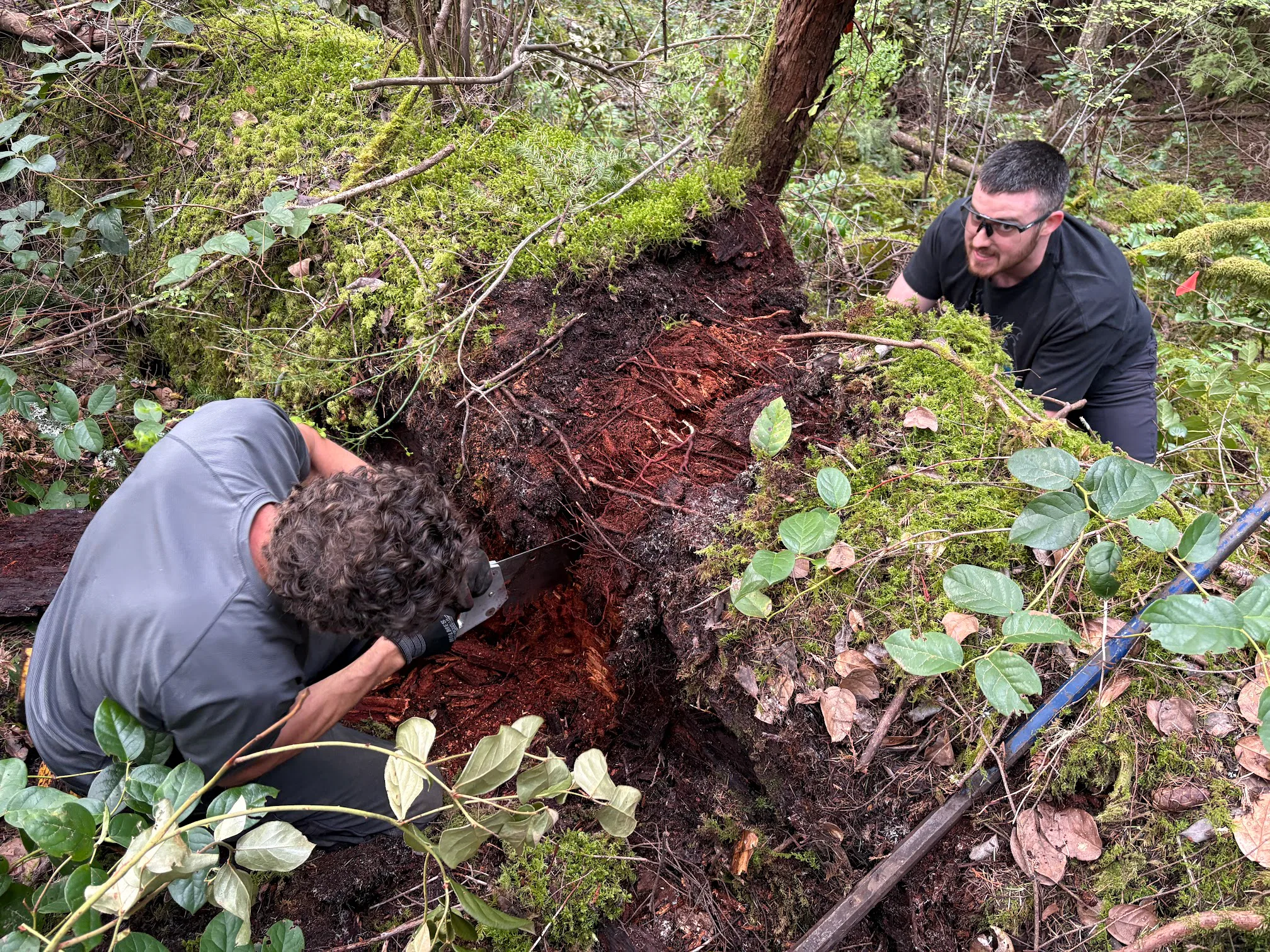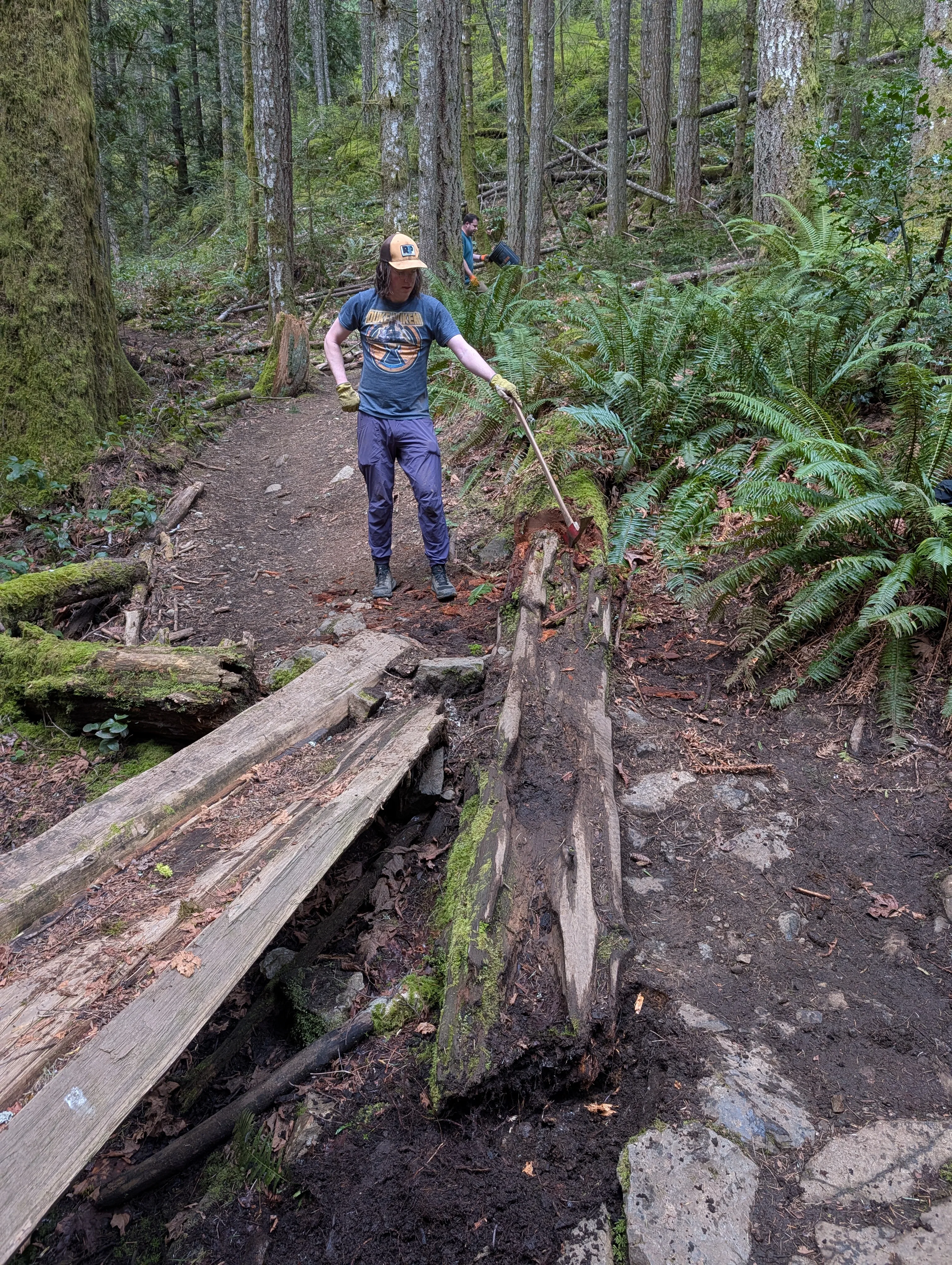 90’s Jank: one issue was to remove a log laying annoyingly across the trail, the other was re-jig the run out on the big rock roll (check out those before & after photos!)