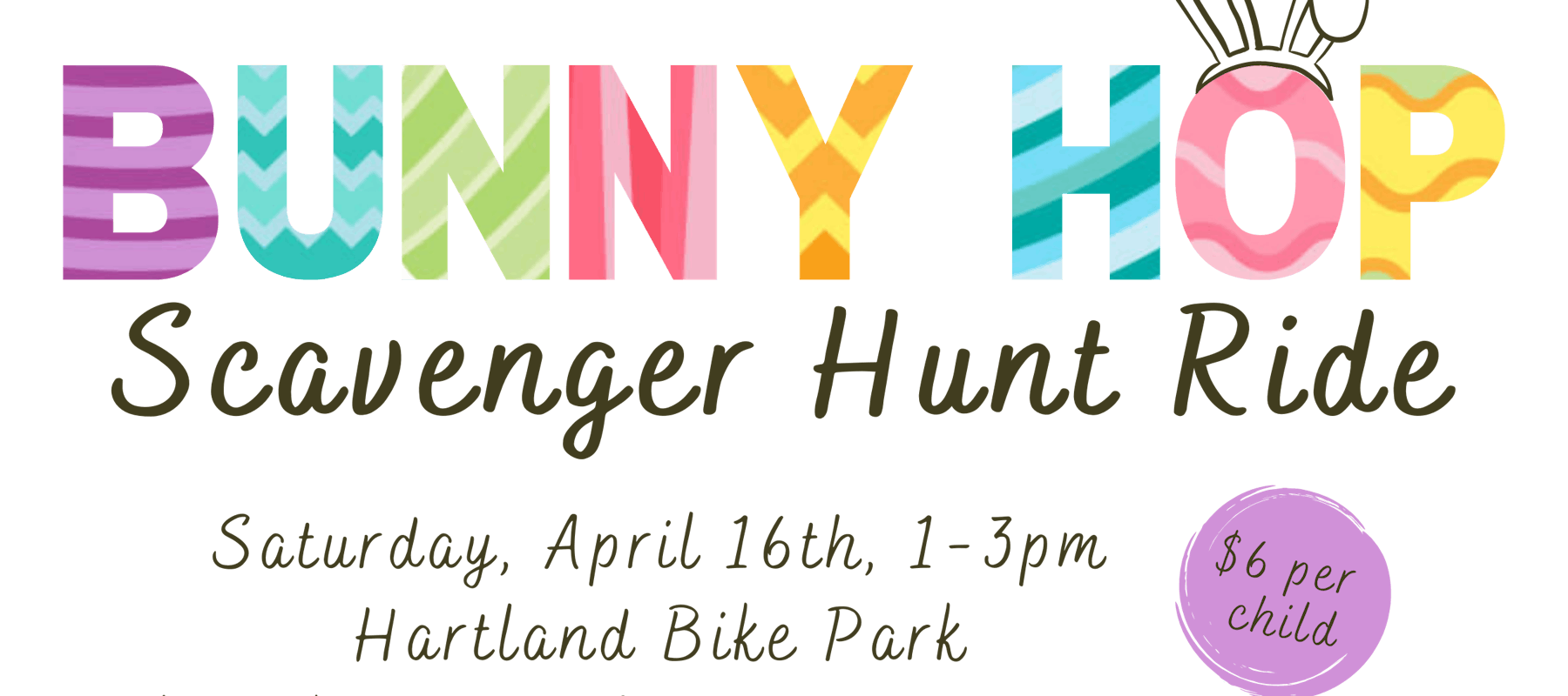 Saturday, April 16 • 1-3pm • Hartland Bike Park • $6 per child