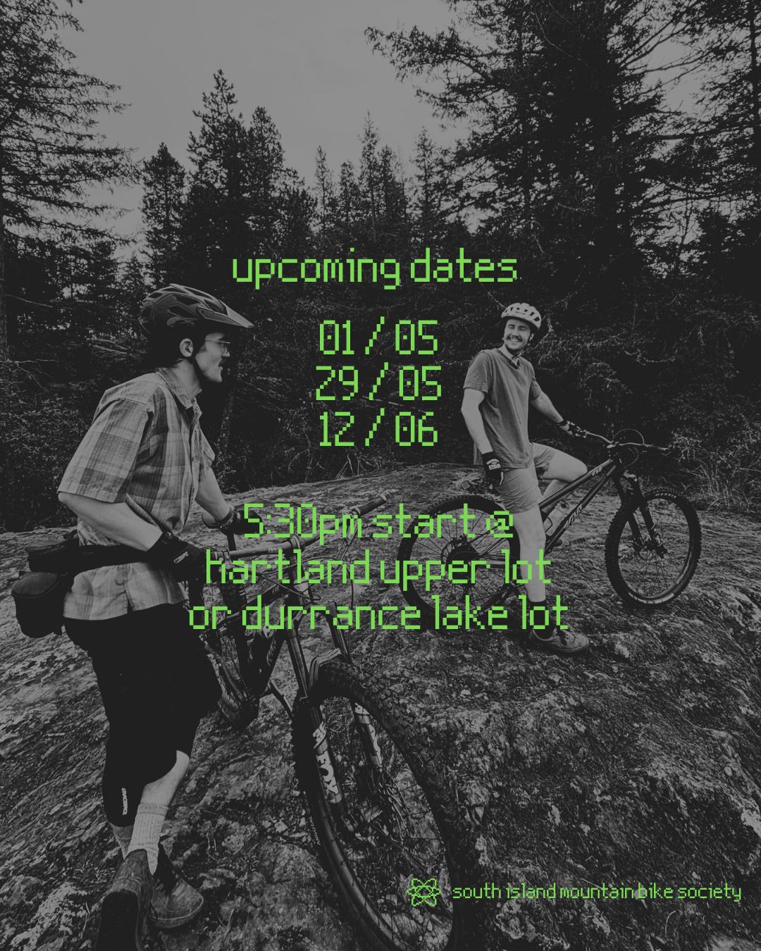 Rides will start at 5:30 pm in either the upper Hartland Parking Lot or Durrance Lake Lot.