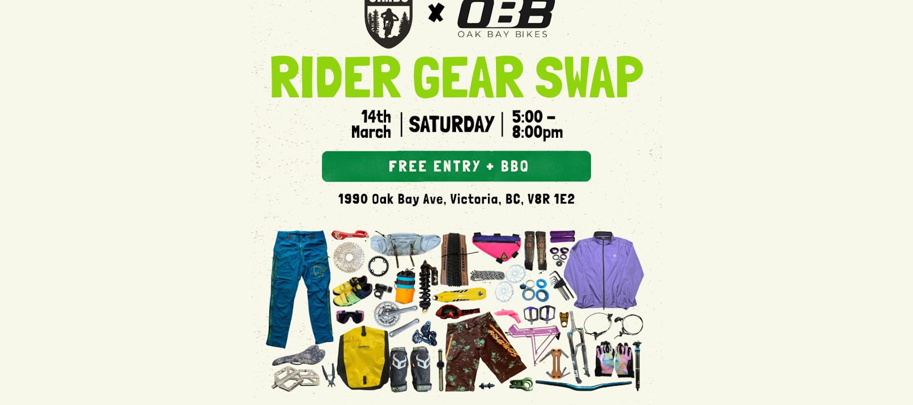 Join us for an evening of deals, community, and pre-spring bike stoke at the SIMBS x Oak Bay Bikes Rider Gear Swap!