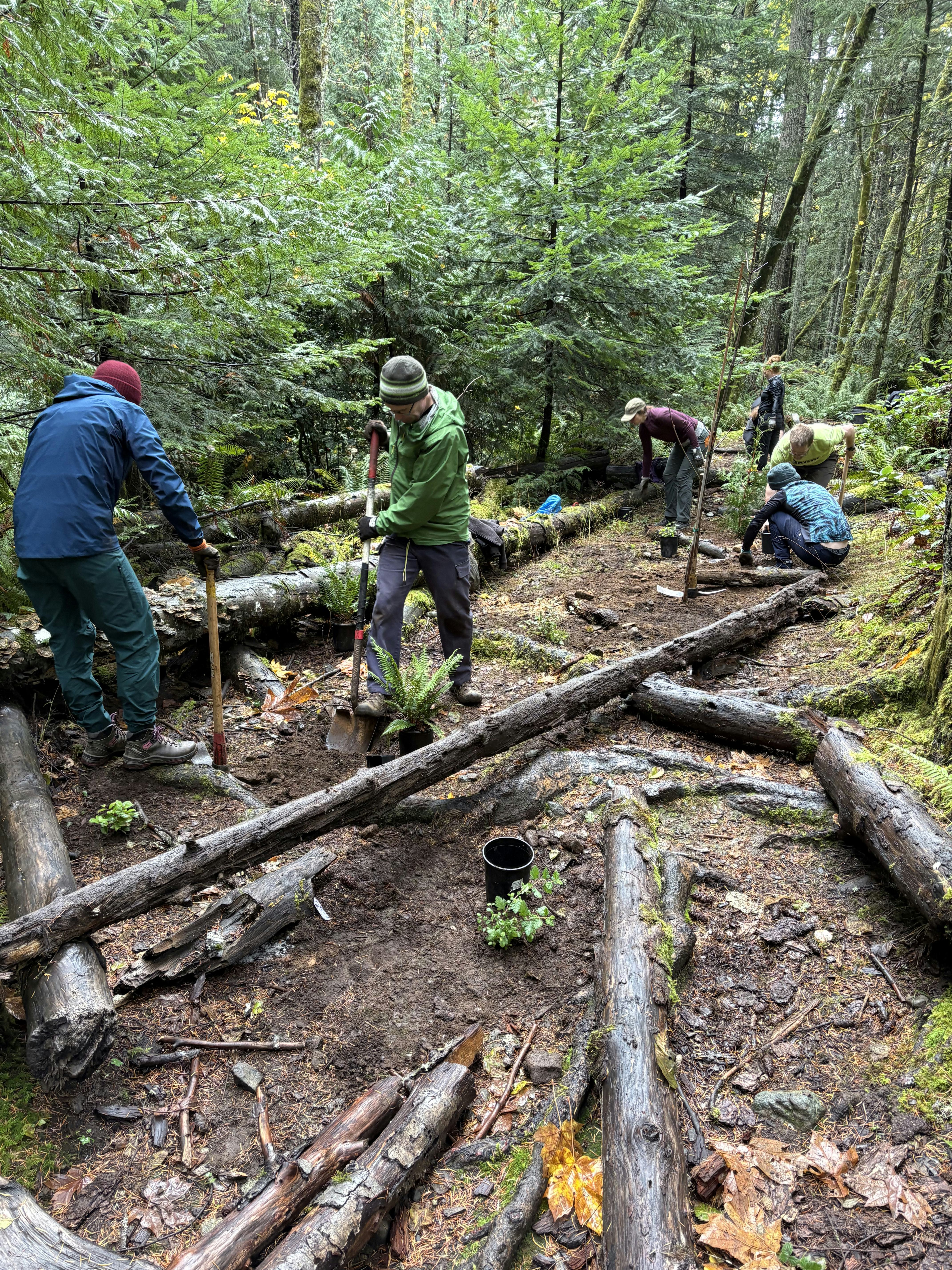We had around 30 volunteers out for Restoration Day, helping to replant and restore areas throughout Middle Earth! Our crew lucked out with some good weather and worked across three main sections: upper Middle Earth near Phase 2, the old roadbed on former Centrefold by Harem Scarem, and lower sections of Middle Earth.